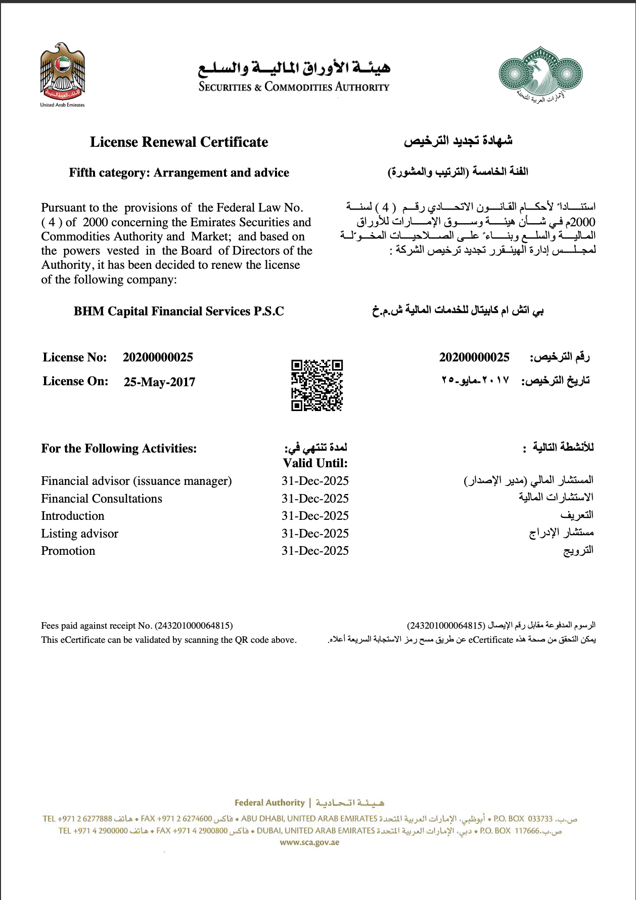 كما نحثكم على الإبلاغ الفوري عن أي نشاط مشبوه إلى الجهات التنظيمية المختصة في الدولة.